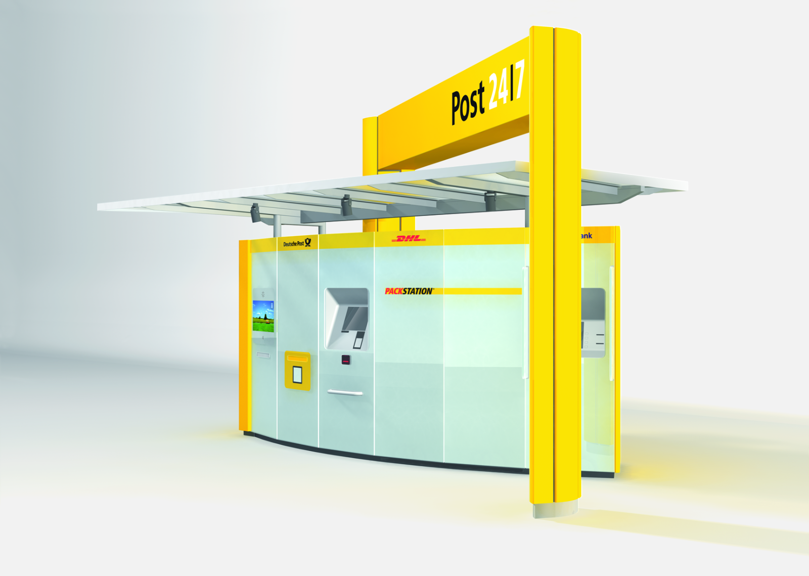 Integration of services from Deutsche Post, DHL, and Postbank into a 24/7 service platform with high location flexibility
