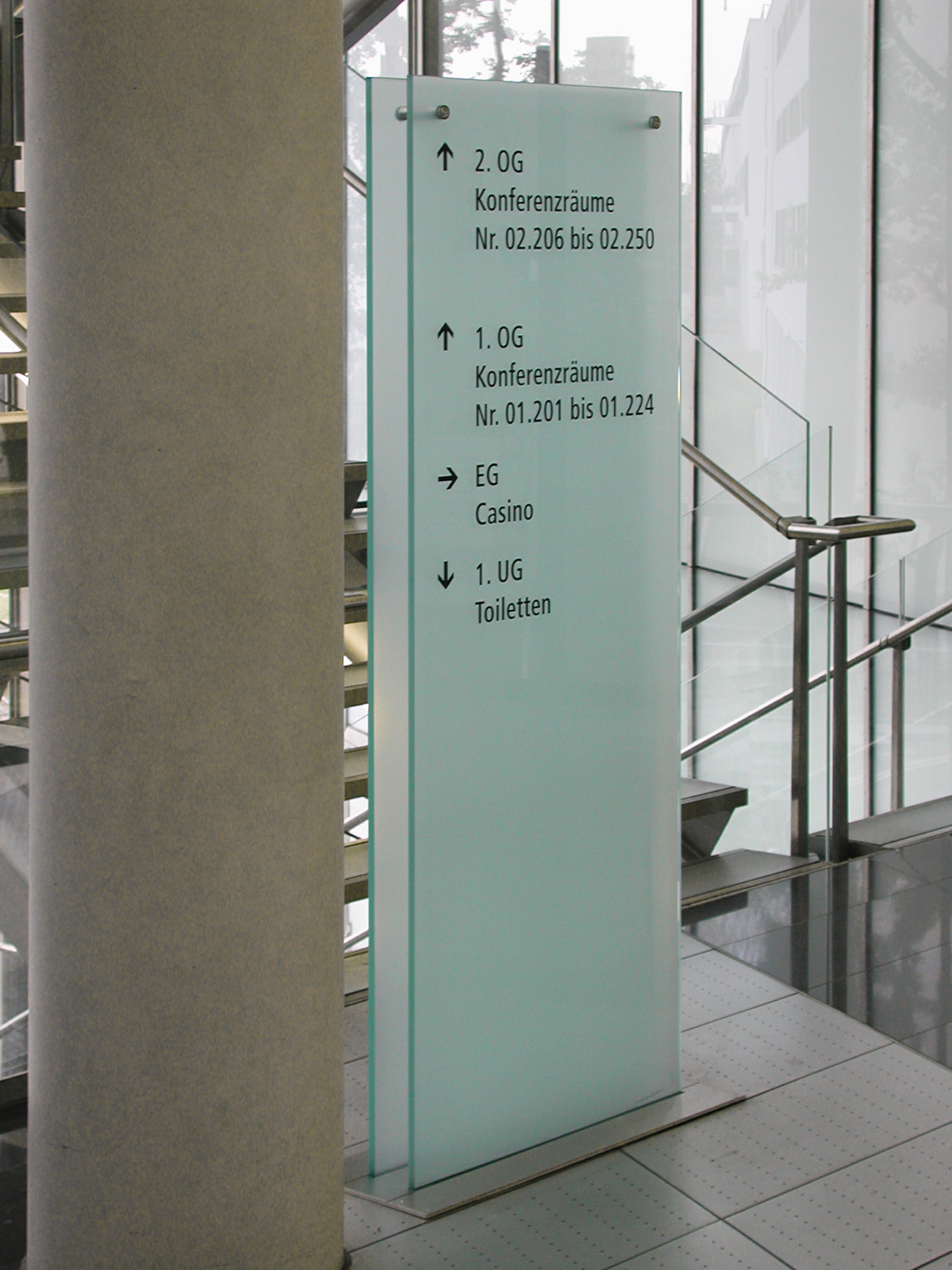 For the Bonn headquarters of the DHL Group, a holistic wayfinding system was developed that integrates architecture, user guidance, and brand identity. It comprises the complete design of all wayfinding elements in hardware and graphics – from remote building signage to the main entrance through all floors to the parking garage – and was developed through to production readiness.