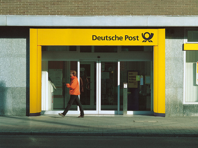 The yellow portal strengthens the brand identity of Deutsche Post and Postbank Centers through increased presence in streetscapes.